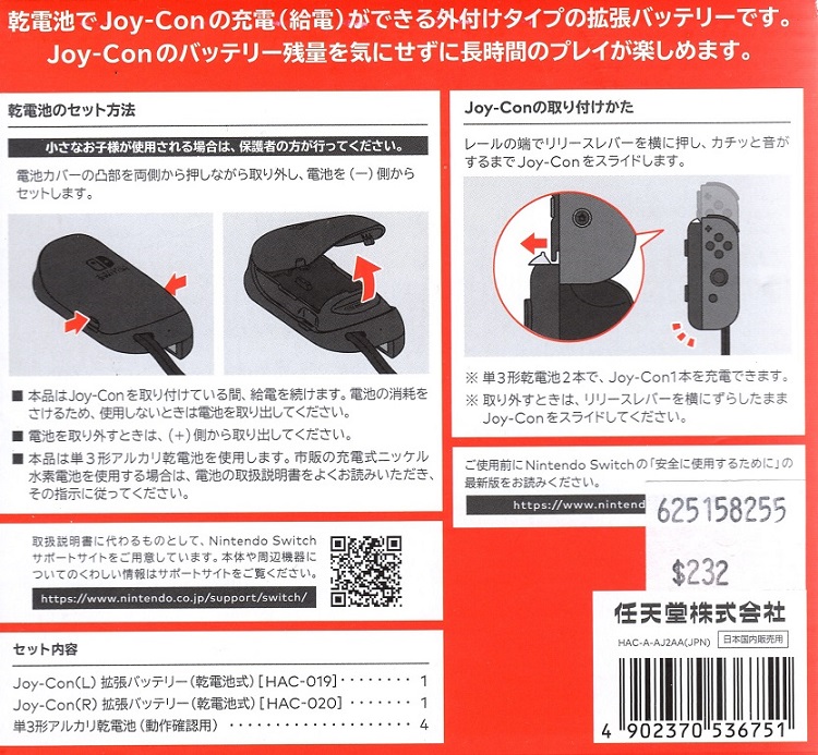 SWITCH JOY-CON EXTENDED BATTERY (DRY CELL) JP | N Switch Accessories | 2 | In Stock | ||