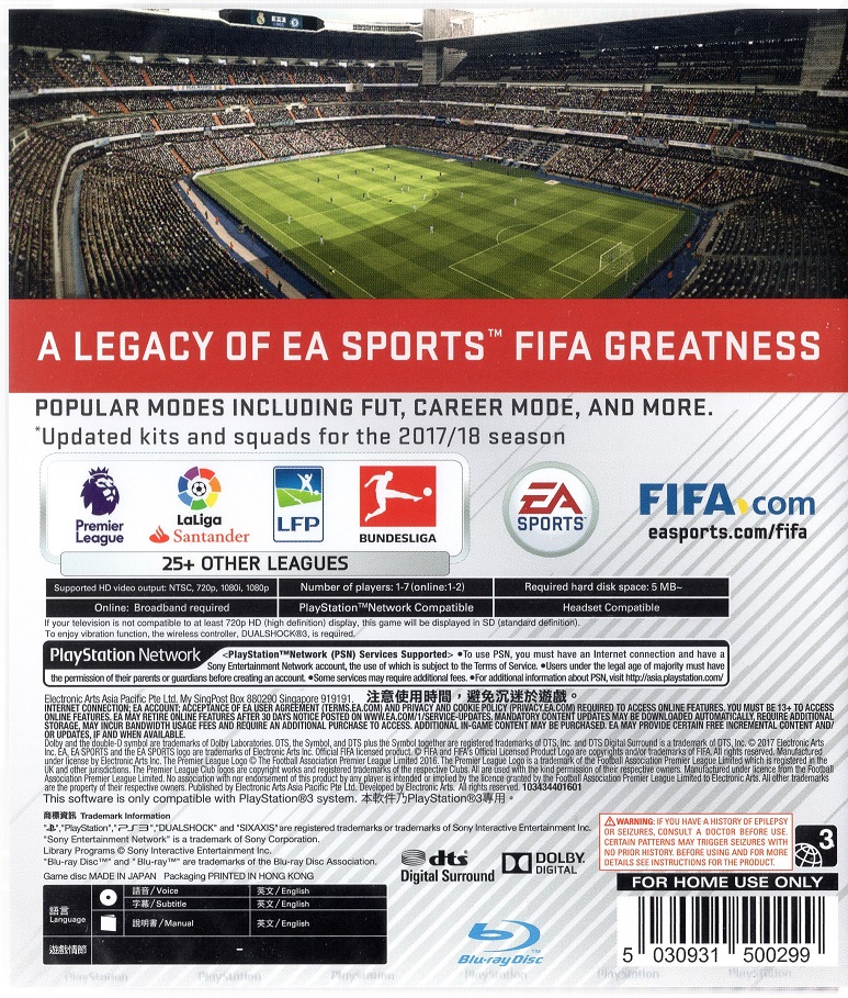 FIFA18 PS3 AS LEGACY EDITION | PS3 Game | 0 | 2-4 Days | ||