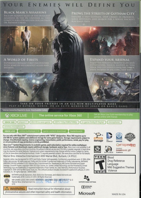 BATMAN ARKHAM ORIGINS X360 US | Xbox 360 Game | 2 | In Stock | ||