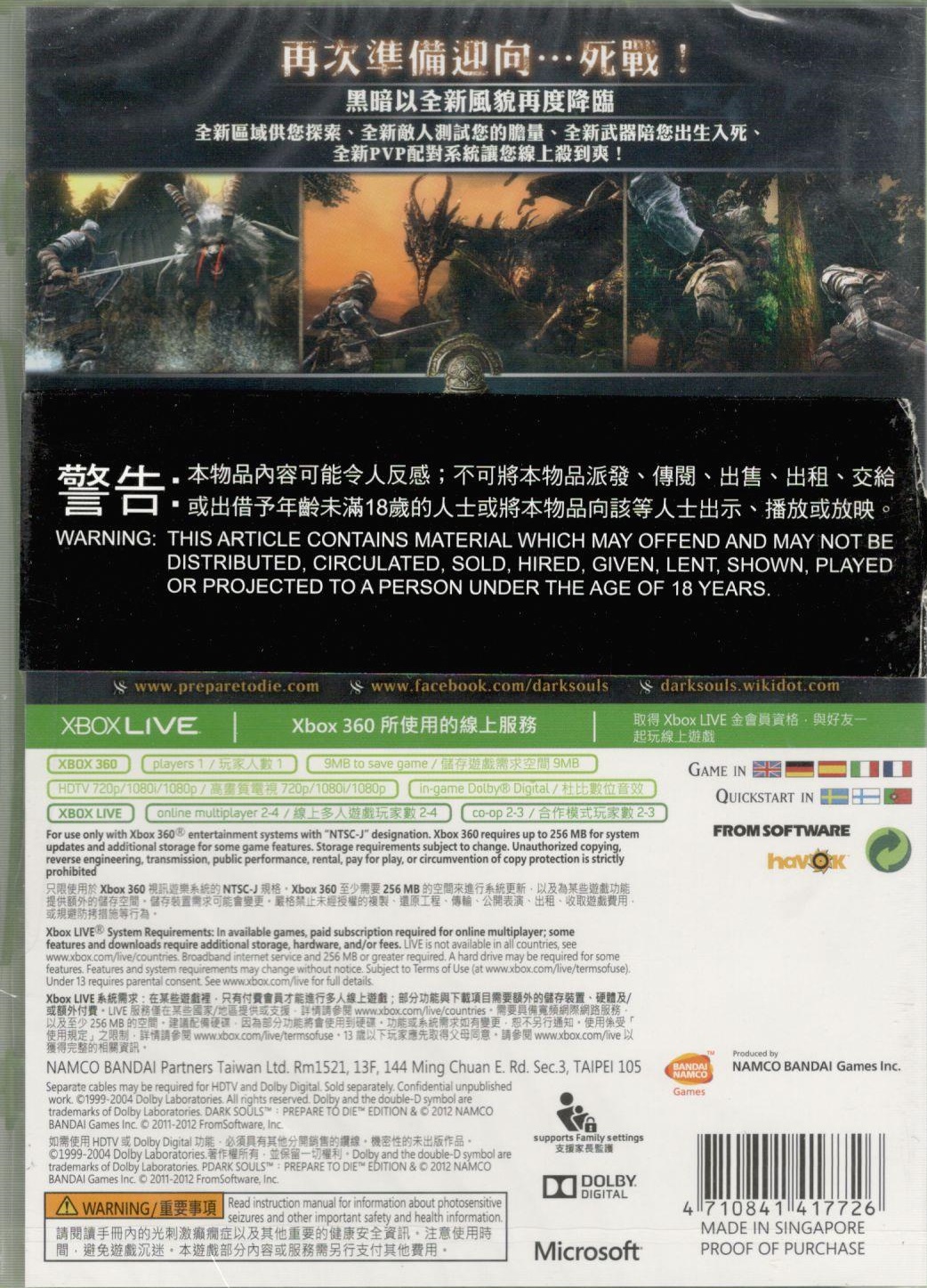DARK SOULS PREPARE TO DIE X360 AS CHI | Xbox 360 Game | 9 | In Stock | ||