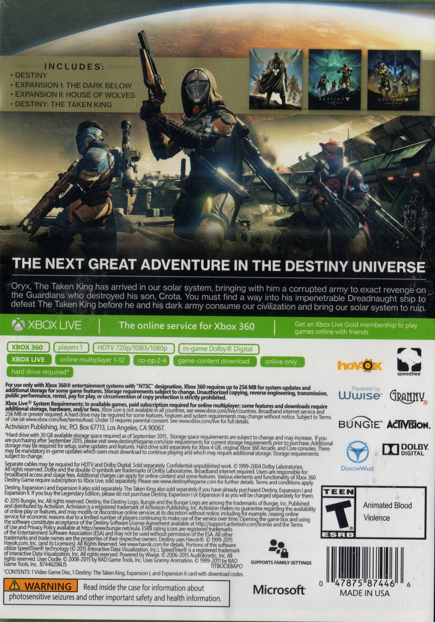 DESTINY: THE TAKEN KING X360 US LEGENDARY EDITION | Xbox 360 Game | 1 | In Stock | ||
