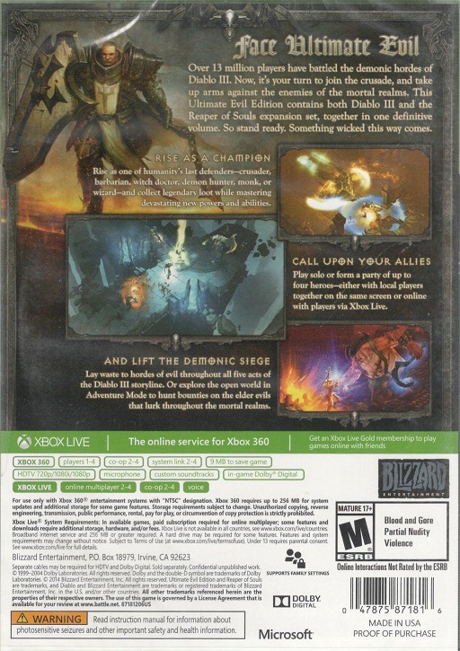 DIABLO III : REAPER OF SOULS X360 US ULTIMATE EVIL | Xbox 360 Game | 2 | In Stock | ||