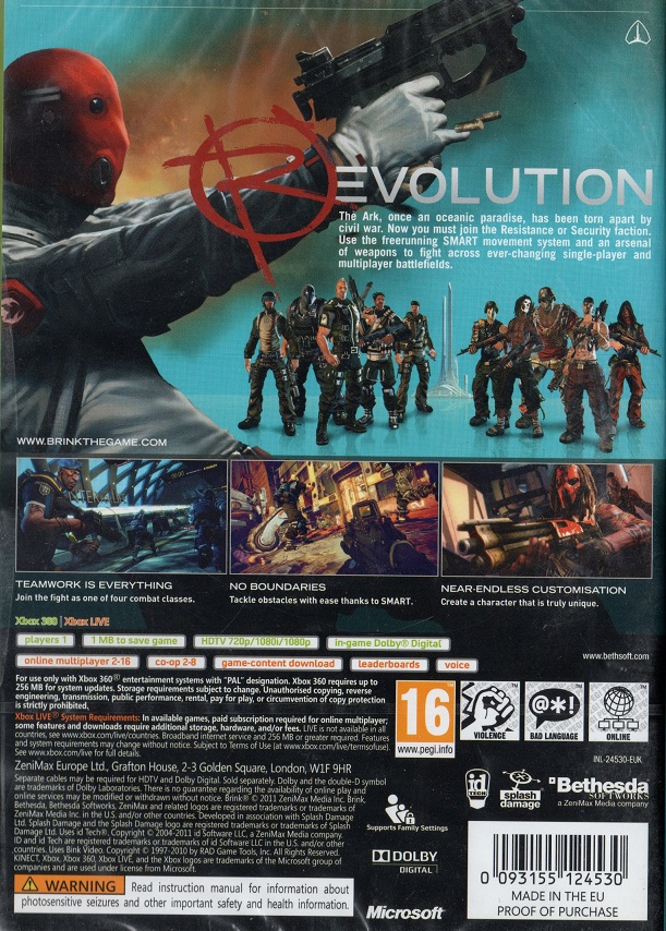 BRINK X360 AS | Xbox 360 Game | 3 | In Stock | ||