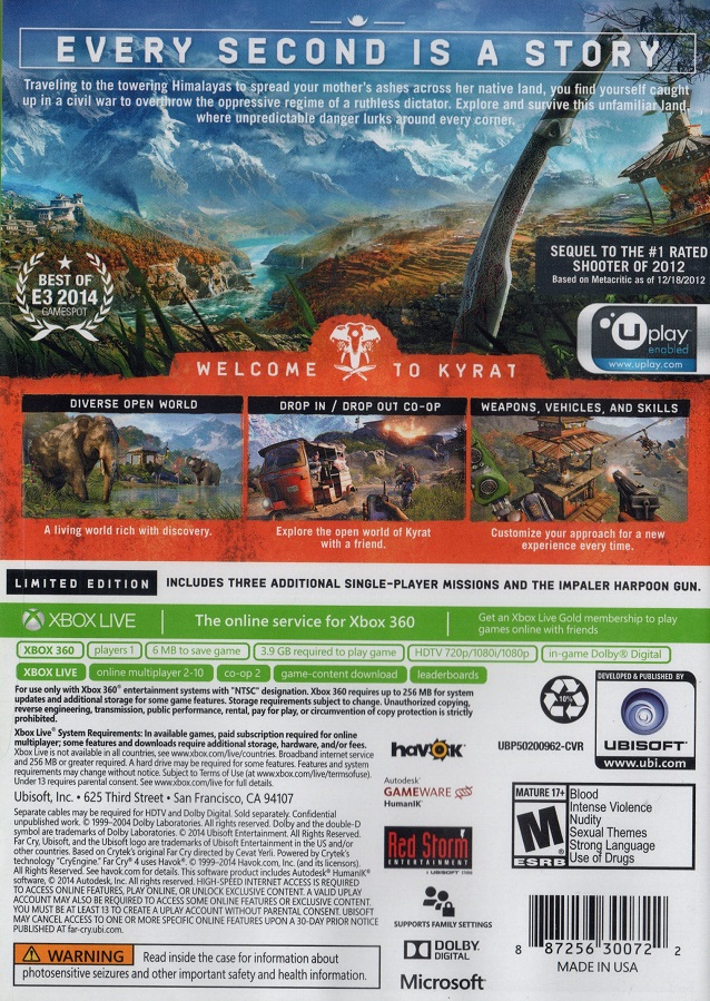 FARCRY 4 X360 US LIMITED EDITION | Xbox 360 Game | 3 | In Stock | ||