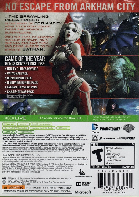 BATMAN: ARKHAM CITY GAME OF THE YEAR X360 US | Xbox 360 Game | 1 | In Stock | ||