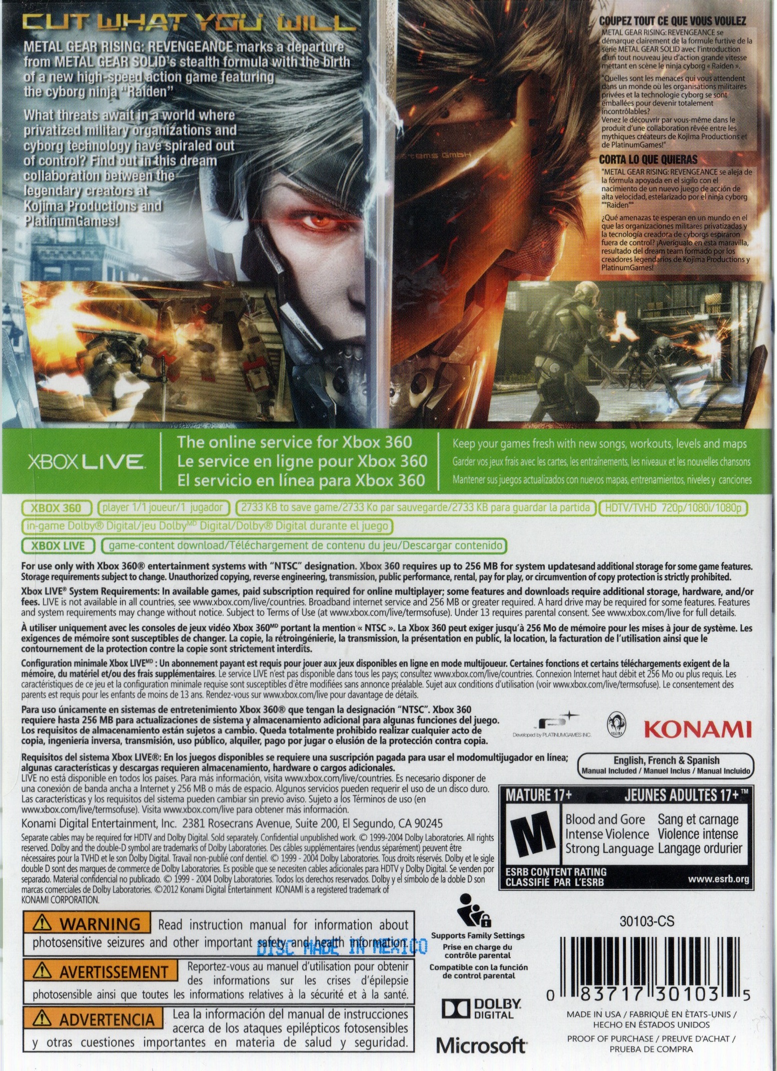 METAL GEAR RISING: REVENGEANCE X360 US | Xbox 360 Game | 5 | In Stock | ||
