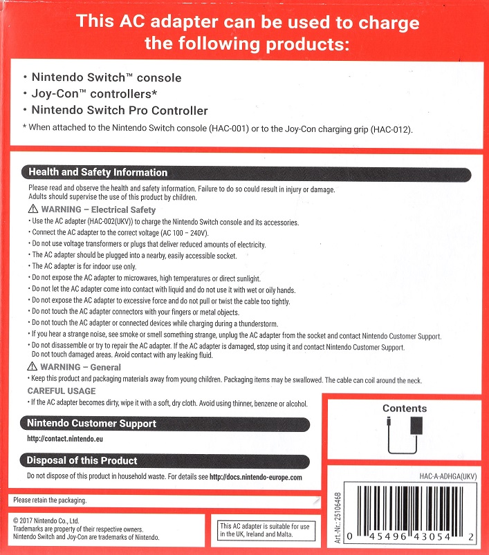 SWITCH AC ADAPTER UK | N Switch Accessories | 0 | 5-7 Days | ||