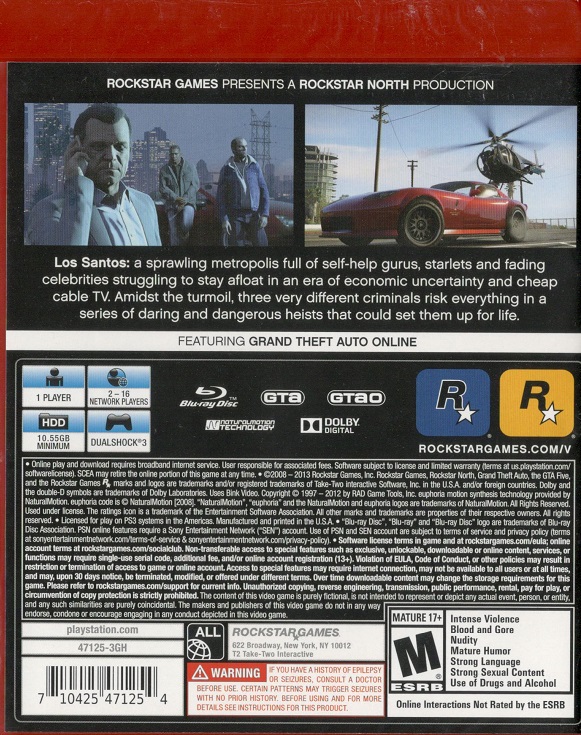 GRAND THEFT AUTO V PS3 US | PS3 Game | 0 | 8-10 Days | ||
