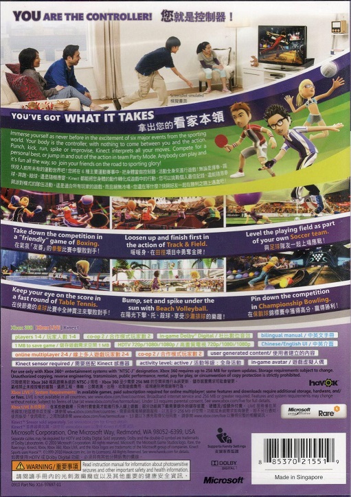 KINECT SPORTS X360 AS | Xbox 360 Game | 87 | In Stock | ||