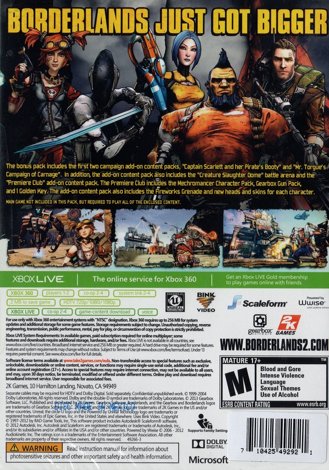 BORDERLANDS 2: ADD-ON CONTENT PACK X360 US | Xbox 360 Game | 18 | In Stock | ||
