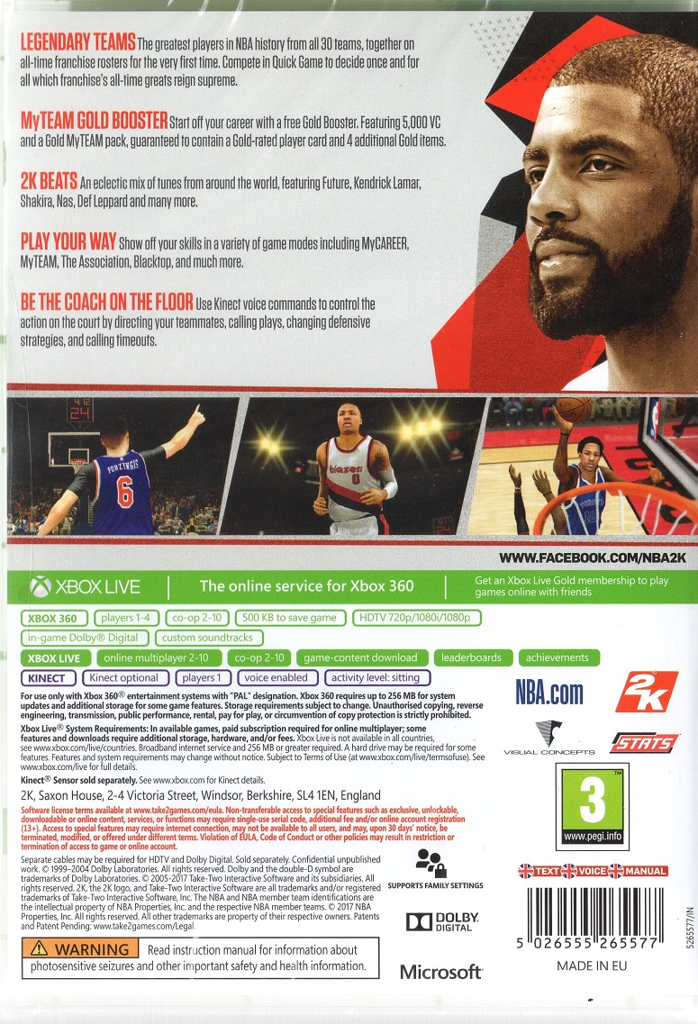 NBA 2K18 X360 EU | Xbox 360 Game | 17 | In Stock | ||