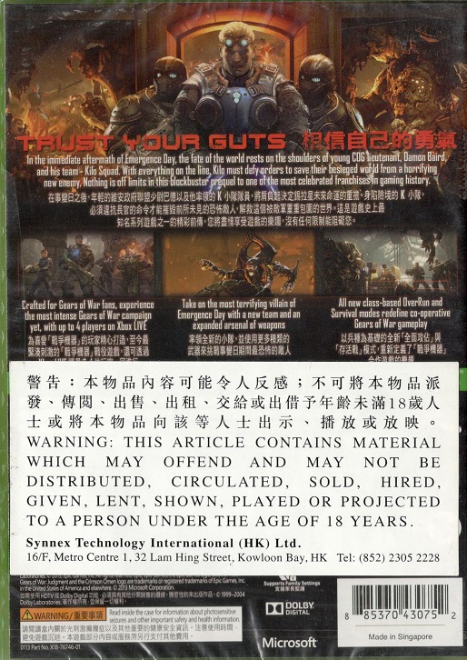 GEARS OF WAR JUDGMENT X360 AS | Xbox 360 Game | 37 | In Stock | ||