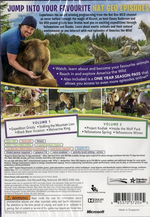 KINECT NAT GEO AMERICA THE WILD X360 AS | Xbox 360 Game | 36 | In Stock | ||